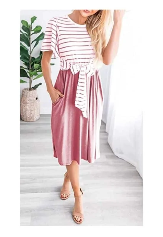 This darling T-shirt dress below is just perfect! The self-tie design is super slimming.