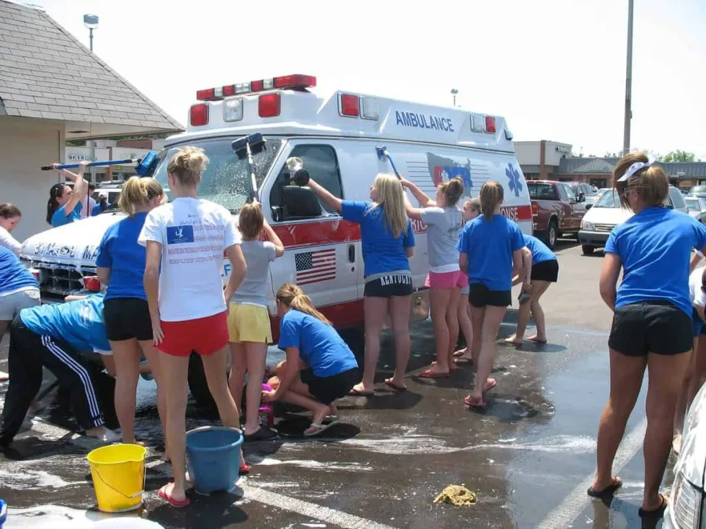 Get a team together with sponges and soap, and drivers are always happy to donate for a clean car.