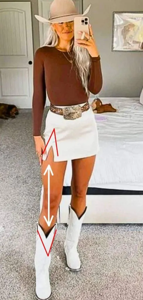 By the way, avoid pairing a midi tight dress with cowboy boots as that’s so tricky to wear and makes you appear to be shorter.
