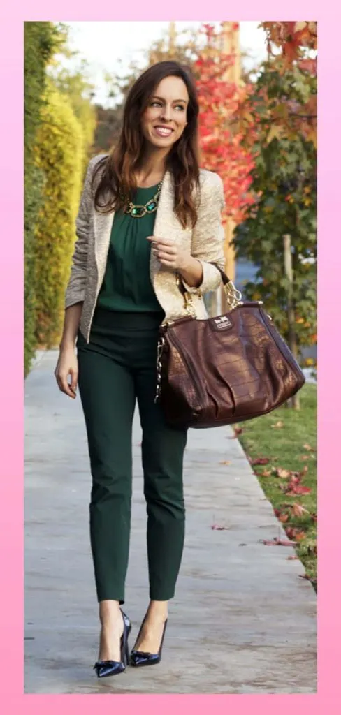 So here are the 18 outfits if you are wondering what to wear with emerald green pants!