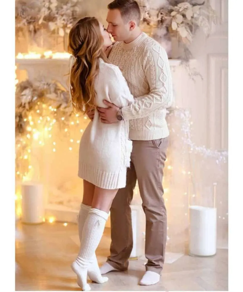Of course, knitted sweaters are a winter staple, so you and your fiance can go out in public wearing any sweater you like with jeans.